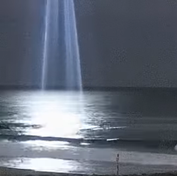 こちらの映像では、画面外の空から放たれているとみられる強い光が、ビーチ一帯を不自然なほど照らし出しています。