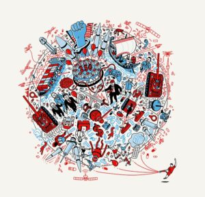 毎年、世界の未来を描くことで知られる「エコノミスト誌」。その2026年版の表紙には、戦争、経済崩壊、人工災害を連想させる数々の象徴が描かれています。